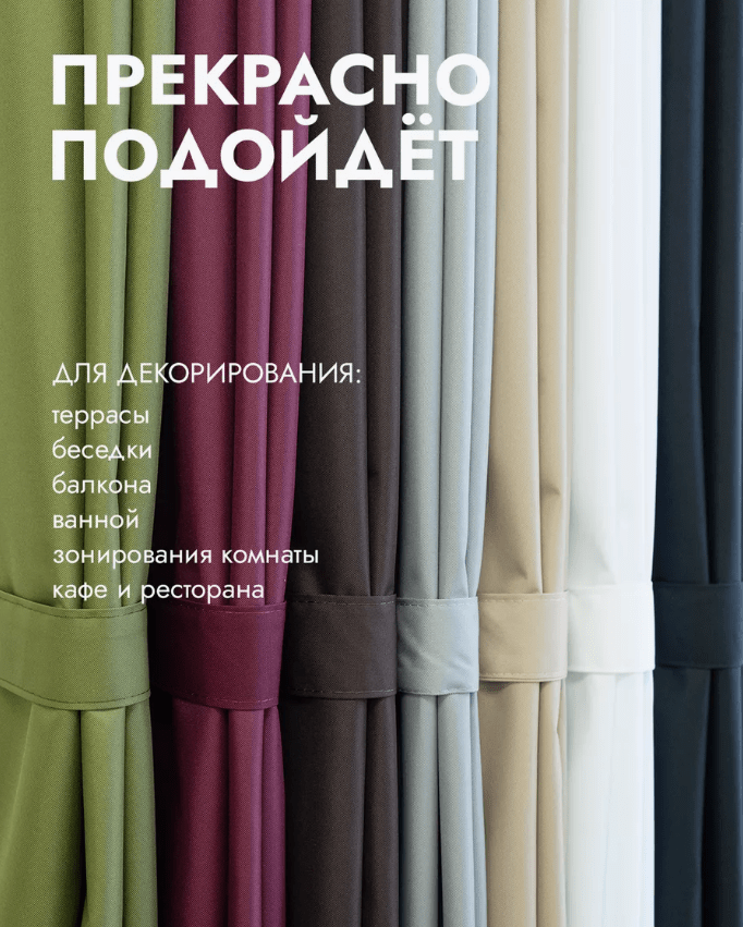 Штора уличная используется для защиты беседок, балконов и лоджий, веранд и открытых террас от ветра, дождя, пыли, жары и насекомых. Тент можно стирать в стиральной машине и гладить с лицевой стороны.