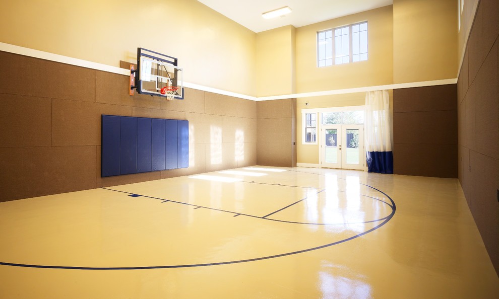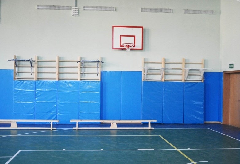 Защита оборудования и стен в спортзале, разграничение зала под разные виды спорта.