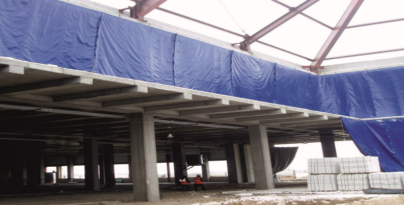 Используются для защиты стройматериалов, строительных конструкций и рабочих площадок от осадков, ветра и солнечного излучения. Применяются для временных укрытий на строительных объектах. Основные особенности: водонепроницаемость, устойчивость к разрывам, укрепленные края с люверсами для крепления.
